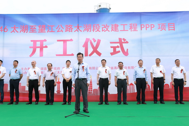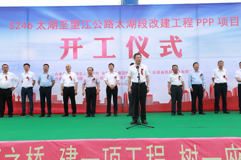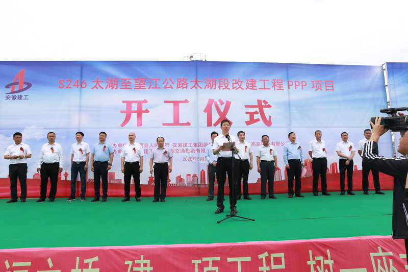 5月27日上午,S246太湖至望江公路太湖段改建工程PPP項目成功舉行開工儀式,標志著集團公司和太湖縣政府合作的第二個PPP項目進入全面實施階段。太湖縣委書記程志翔,縣委副書記、縣長朱小兵,人大主任張達華,政協(xié)主席趙福南,控股公司黨委委員、股份公司董事長王厚良,安建投資總經(jīng)理朱忠明、副總經(jīng)理謝洪兵,安徽路港董事長李振標,安徽高路黨委書記、董事長胡紅雨等出席開工儀式并共同為新項目培土奠基。太湖縣委書記程志翔宣布工程項目開工,縣委常委、常務(wù)副縣長陳時彪主持儀式。