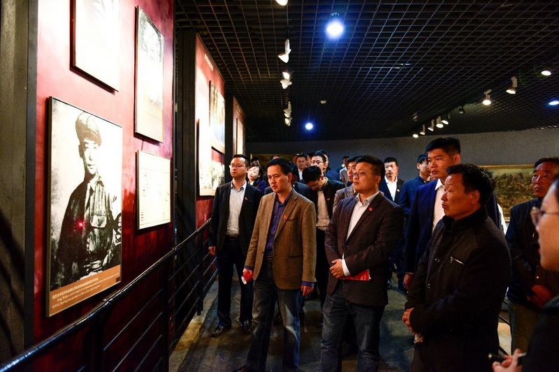 在淮海戰(zhàn)役紀(jì)念館內(nèi),大家對(duì)淮海戰(zhàn)役總體情況進(jìn)行了詳細(xì)了解。參觀過(guò)程中,根據(jù)戰(zhàn)役三個(gè)階段的決策部署和執(zhí)行情況,認(rèn)真分析了兵力、裝備、民心等方面資源情況,大家通過(guò)熱烈討論,一致認(rèn)為中國(guó)共產(chǎn)黨的統(tǒng)一領(lǐng)導(dǎo)和軍民團(tuán)結(jié)是淮海戰(zhàn)役的制勝法寶,撫今追昔,中國(guó)人民解放軍的英雄氣概仍歷歷在目,深切地感受到人民戰(zhàn)爭(zhēng)的偉大!在淮海戰(zhàn)役總前委群雕前,全體黨員深切緬懷劉伯承、陳毅、鄧小平、粟裕、譚震林5位革命先烈。在余志剛的帶領(lǐng)下,全體黨員舉起右拳,以堅(jiān)定有力的聲音重溫了入黨誓詞。錚錚誓言久久回蕩,表達(dá)了大家不忘初心、牢記使命的堅(jiān)定政治信念,為黨和國(guó)家事業(yè)矢志不渝、奮斗終身的決心。