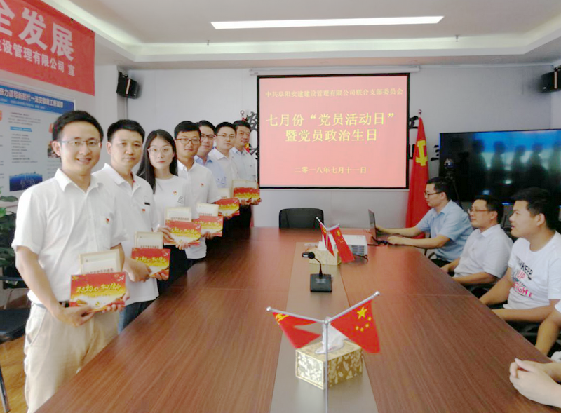 為紀(jì)念建黨97周年,7月11日下午,中共阜陽安建建設(shè)管理有限公司聯(lián)合支部開展7月份“黨員活動日”,并為黨員過集體政治生日。