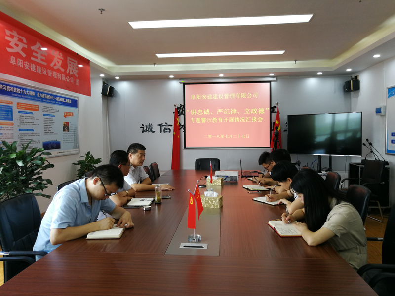 7月27日上午,安建投資公司副總經(jīng)理、紀檢委員、工會主席朱友良赴阜陽PPP項目公司開展夏日“送清涼”活動,并召開“講忠誠、嚴紀律、立政德”專題警示教育情況匯報會,對“講嚴立”工作進行實地督查。