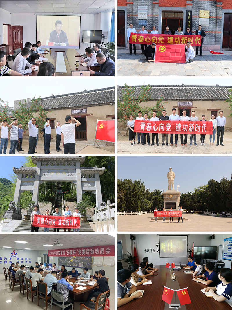 懷寧安建團小組組織團員青年集中收看紀(jì)念五四運動100周年大會盛況,及時學(xué)習(xí)習(xí)近平總書記在紀(jì)念五四100周年大會上的講話精神,并集體赴懷寧縣獨秀公園黨史教育基地和海子故居紀(jì)念館參觀學(xué)習(xí);阜陽安建團小組聯(lián)合太和安建團小組集中觀看紀(jì)錄片《五四記憶》;太湖安建團小組踴躍參加項目公司召開的2019年度“安康杯”競賽動員大會,并就如何防范安全問題積極發(fā)言,以實際行動落實習(xí)近平總書記關(guān)于安全生產(chǎn)工作的重要指示精神;靈璧安建團小組來到宿州彭雪楓紀(jì)念館開展主題活動,感悟彭雪楓將軍光輝一生的英雄事跡;廣德新鳳團小組赴安徽廣德縣柏墊鎮(zhèn)梨山村英烈山開展主題活動,團員們重溫了入團誓詞,在40位英烈面前莊嚴(yán)宣誓;淮北安建交通團小組赴淮海戰(zhàn)役總前委舊址接受革命傳統(tǒng)和愛國主義教育;績溪安建團小組召開學(xué)習(xí)會,深刻學(xué)習(xí)領(lǐng)會習(xí)近平總書記對廣大青年殷切期望;舒城安建團小組赴新四軍四支隊革命紀(jì)念館,接受革命傳統(tǒng)教育;涇縣團小組集體觀看紀(jì)念改革開放四十周年紀(jì)錄片《我們的四十年》,重溫改革歷史、追憶改革歲月、傳承改革基因。