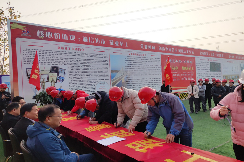 11月12日,淮北安建交通建設有限公司舉辦勞動競賽啟動儀式暨“大干六十天”誓師大會?;幢笔薪煌ň指本珠L任士新、淮北市交通局工會主席丁道杰等地方政府主管部門領導蒞臨現(xiàn)場參加活動。聯(lián)合黨支部副書記劉建文、淮北市公路局副局長謝世忠分別向項目公司授予“黨員先鋒隊”和“青年突擊隊”旗幟,要求全體黨員團員發(fā)揮模范帶頭作用,攻堅克難,實現(xiàn)競賽目標。