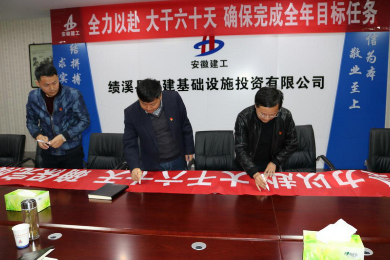 11月12日,績溪安建投資公司召開 “大干六十天”勞動競賽活動啟動會,圍繞“質量、安全、進度”進行工作部署,要求各參建單位嚴守崗位職責,強化溝通協(xié)作,抓好競賽落實。政府方負責部門、施工單位各項目部和監(jiān)理單位積極響應,表示將全力以赴,積極落實競賽要求。各參建單位負責人在“大干六十天”條幅上簽名,鄭重承諾圓滿完成全年目標任務。