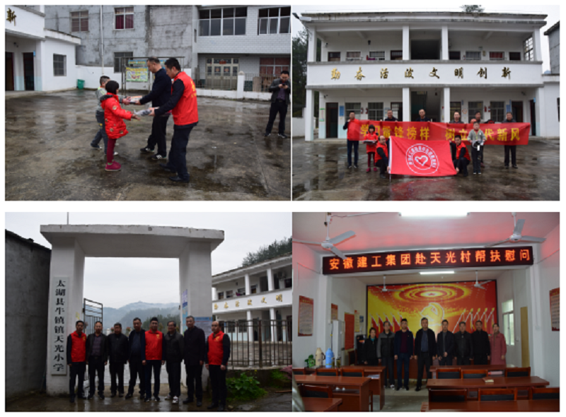 太湖安建“雷鋒志愿者”小隊聯(lián)合當(dāng)?shù)卣块T赴牛鎮(zhèn)鎮(zhèn)天光村小學(xué),為留守兒童送去了書籍、籃球、羽毛球等文體用品,志愿者耐心地給孩子們講述雷鋒故事,傳承雷鋒精神。隨后,志愿者小隊還前往慰問了扶貧工作幫扶對象。