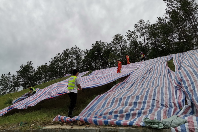 汛期來臨之前,廣德新鳳公司提前部署,組織養(yǎng)護(hù)作業(yè)人員對全線橋涵、邊溝、泄水槽和排水溝等設(shè)施的雜物、泥土、雜草進(jìn)行全面排查、清理,保證排水通暢、道路安全。由于降水集中且雨量較大,部分邊坡經(jīng)雨水沖刷導(dǎo)致局部坍塌,項目公司第一時間到達(dá)現(xiàn)場,判斷坍塌影響程度,安排人員放置錐形桶等警示防撞設(shè)施,保障過往車輛安全出行。同時搶抓晴好天氣,組織養(yǎng)護(hù)隊伍采取濾網(wǎng)覆蓋等措施對邊坡加固,防止安全隱患發(fā)生。