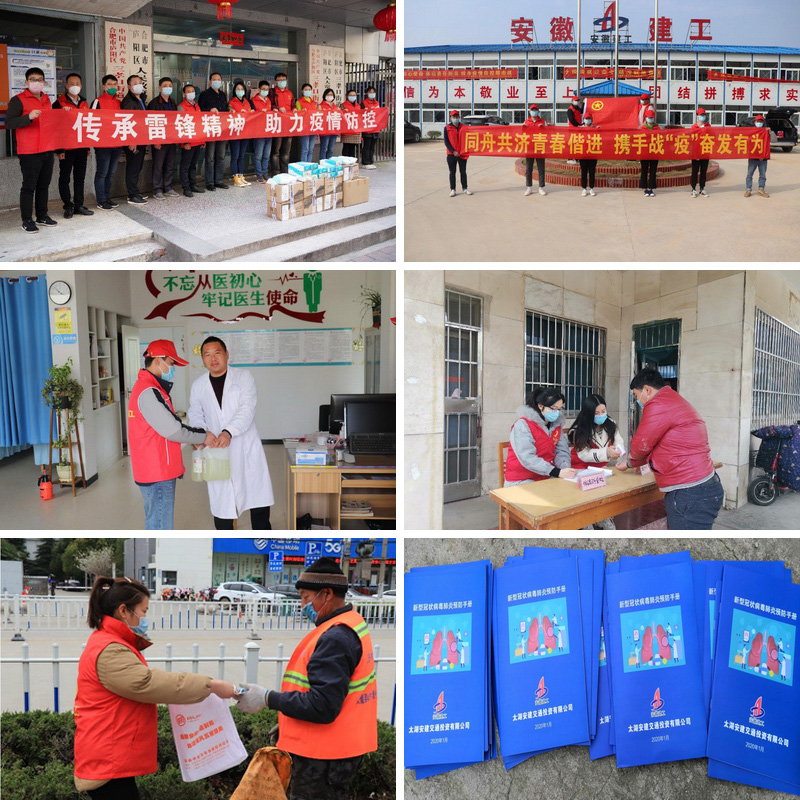 黨有號(hào)召,團(tuán)有行動(dòng)。在疫情防控工作的關(guān)鍵時(shí)期,公司團(tuán)員青年立即行動(dòng),積極參與。公司機(jī)關(guān)赴合肥市廬陽(yáng)區(qū)人民政府三孝口街道辦事處開(kāi)展疫情防控志愿活動(dòng),向辦事處捐贈(zèng)口罩、消毒液及手套等防疫物資,在辦事處負(fù)責(zé)人的帶領(lǐng)下,走進(jìn)百大CBD寫(xiě)字樓、九州大廈、永紅路社區(qū)等地,向群眾宣傳防疫知識(shí),幫助測(cè)量體溫,指導(dǎo)掃描“安康碼”,做好人員出入登記。懷寧安建公司集中觀看了武漢雷神山建設(shè)視頻短片。隨后,志愿者前往各工區(qū)駐地、沿線已拆遷的百姓家庭以及村衛(wèi)生院,贈(zèng)送口罩、84消毒液、防疫知識(shí)手冊(cè)等,助力群眾共同戰(zhàn)“疫”。淮北安建公司、淮北交通公司主動(dòng)請(qǐng)纓來(lái)到淮北市特鑿公司小區(qū),協(xié)助測(cè)量體溫、登記來(lái)訪人員、排查外來(lái)住戶,向居民發(fā)放宣傳手冊(cè),宣講疫情防控知識(shí)。太湖安建公司根據(jù)集團(tuán)和公司下發(fā)的防疫知識(shí)手冊(cè),改編成普通居民可用版并裝訂成冊(cè),分發(fā)給駐地太湖縣赤土嶺居民,提高居民的防疫意識(shí)。靈璧安建公司把防護(hù)口罩送到辛勤工作的環(huán)衛(wèi)工人手中,把溫暖送到他們的心上。