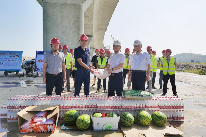 為做好防暑降溫工作,保障施工一線員工和廣大農(nóng)民工的健康權(quán)益,推動(dòng)改善員工生產(chǎn)生活條件,確保一線員工和廣大農(nóng)民工平安度夏。8月17日至19日建工控股公司副總經(jīng)理李有貴、工會(huì)副主席李世龍一行前往安建投資嵊泗PPP項(xiàng)目為奮戰(zhàn)在一線的員工和廣大農(nóng)民工送去了絲絲涼意,獻(xiàn)上了一份誠(chéng)摯的關(guān)懷。