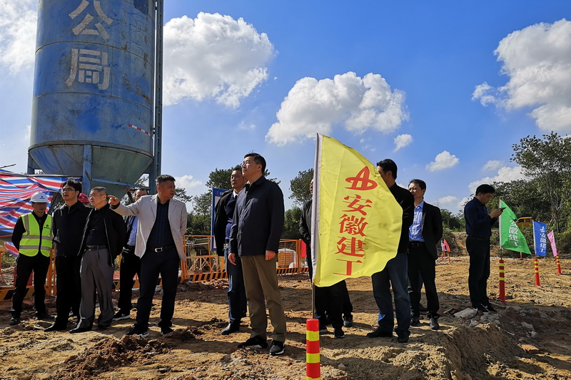 梅耐雪一行深入施工現(xiàn)場(chǎng),實(shí)地查看了潛山市高鐵場(chǎng)站配套PPP項(xiàng)目快速通道、潛河大橋、高鐵廣場(chǎng)建設(shè)最新進(jìn)展及梅城、油壩兩鄉(xiāng)鎮(zhèn)征拆完成情況。調(diào)研結(jié)束后,梅耐雪首先對(duì)項(xiàng)目前期取得的成績(jī)給予充分肯定,并向節(jié)假日期間仍然為潛山市高鐵建設(shè)奮戰(zhàn)在一線的安徽建工人表示感謝。