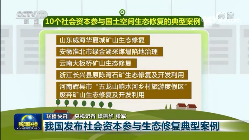 《社會(huì)資本參與國土空間生態(tài)修復(fù)案例(第一批)》收集了社會(huì)資本參與礦山生態(tài)修復(fù)、山水林田湖草生態(tài)保護(hù)修復(fù)、土地綜合整治和海洋生態(tài)保護(hù)修復(fù)4種類型共10個(gè)案例,其中包括以生態(tài)修復(fù)改善生態(tài)環(huán)境帶動(dòng)社會(huì)資本投資、政府和社會(huì)資本合作共建、生態(tài)修復(fù)與城市建設(shè)發(fā)展結(jié)合、生態(tài)修復(fù)與脫貧攻堅(jiān)融合、生態(tài)修復(fù)帶動(dòng)旅游業(yè)發(fā)展等生態(tài)保護(hù)修復(fù)模式,發(fā)揮了良好的生態(tài)效益、經(jīng)濟(jì)效益和社會(huì)效益。自然資源部國土空間生態(tài)修復(fù)司有關(guān)負(fù)責(zé)人在發(fā)布會(huì)上表示:印發(fā)這些案例,主要是為各地吸引社會(huì)資本參與生態(tài)保護(hù)修復(fù)提供借鑒,供各地在工作中參考;同時(shí),也希望各地結(jié)合實(shí)際、大膽探索、勇于創(chuàng)新,不斷創(chuàng)造新經(jīng)驗(yàn)。今后還將陸續(xù)發(fā)布新的典型案例,總結(jié)推廣新的經(jīng)驗(yàn)。