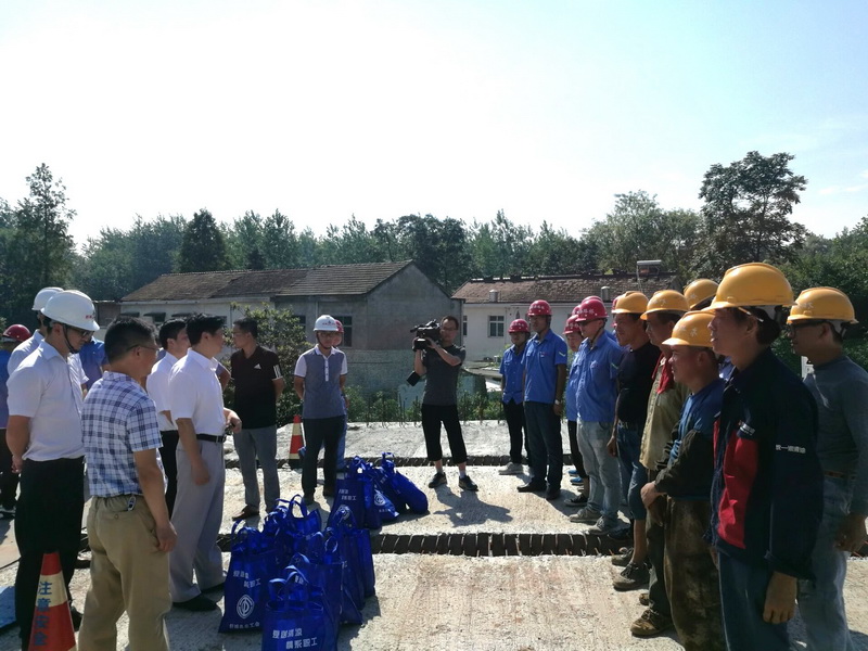 入伏以來(lái),驕陽(yáng)似火,高溫不斷。為確保一線工人生命安全, 7月18日,舒城安建夏送清涼慰問(wèn)活動(dòng)同步展開(kāi)。舒城安建總經(jīng)理?xiàng)钴?,副總?jīng)理周忠參與慰問(wèn)并深入查看了施工人員居住情況,排除用電隱患,為G206(舒城段)改建工程PPP項(xiàng)目安全施工做好保障工作。