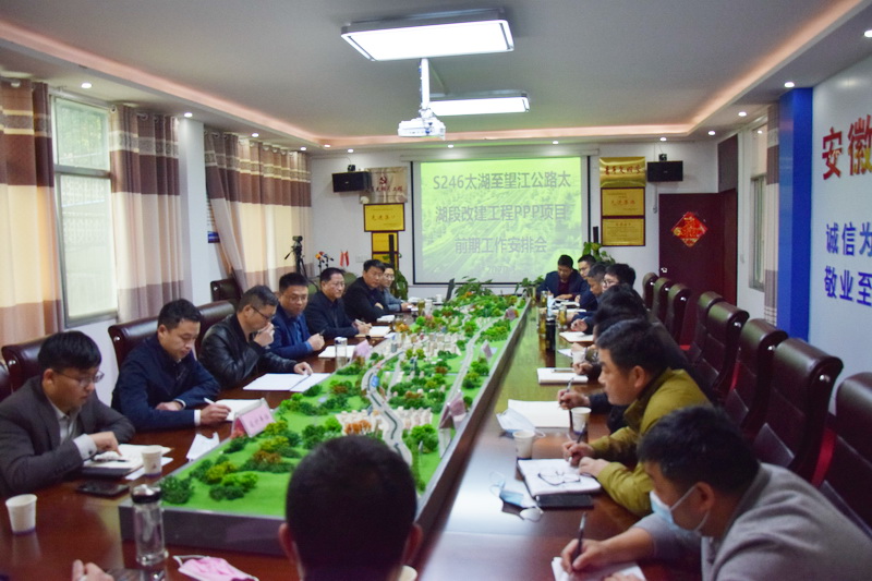 3月24日,安建投資太湖S246 PPP項目召開前期工作安排會,設計、監(jiān)理、施工等參建單位主要負責人參加會議。