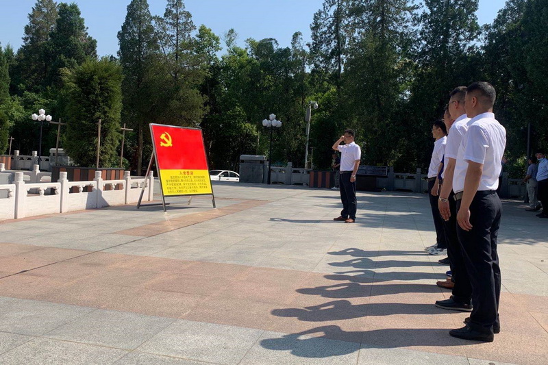 活動(dòng)現(xiàn)場(chǎng),全體人員向烈士紀(jì)念塔敬獻(xiàn)花籃、鞠躬默哀,向?yàn)楦锩聵I(yè)獻(xiàn)出寶貴生命的英雄烈士致以崇高的敬意和深切的緬懷。全體黨員還在黨旗下莊嚴(yán)地重溫入黨誓詞。