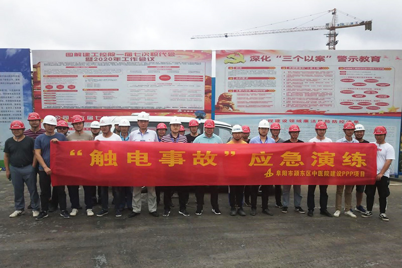 6月29日,阜陽穎東區(qū)中醫(yī)院PPP項(xiàng)目公司邀請阜陽市第七人民醫(yī)院在項(xiàng)目施工現(xiàn)場,組織開展了一場觸電事故應(yīng)急演練活動(dòng)。演練活動(dòng)中,演練小組成員相互協(xié)調(diào),認(rèn)真配合醫(yī)療人員開展救援工作。緊急救援結(jié)束后,救援小組還進(jìn)一步檢測了實(shí)驗(yàn)設(shè)備,分析事故原因,并交流應(yīng)急救援感想。