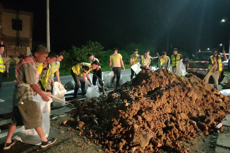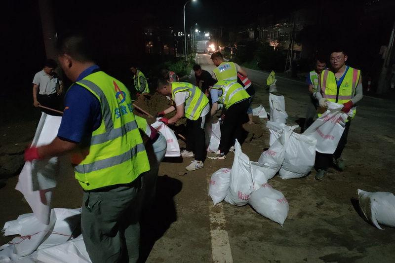 項目迅速組織抽調各工區(qū)施工機械設備及人員,項目部負責人親自組織管理人員到現場進行沙袋裝填,廣大黨員干部和青年團員沖在第一線、干在危險處,表現出敢打硬仗、勇于奉獻的頑強作風,現場氣氛火熱,分工明確,爭分奪秒,對水位上漲可能浸沒地區(qū)實施封堵作業(yè)?,F場共裝填沙袋700余袋,封堵范圍超過150余米,有效地控制了當地低洼地帶洪水淹沒范圍,保護了人民群眾的生命財產安全。安徽建工集團作為國有企業(yè)勇于奉獻的擔當精神和基層建工人敢為人先的奉獻精神也得到當地政府及沿線居民的高度贊揚。