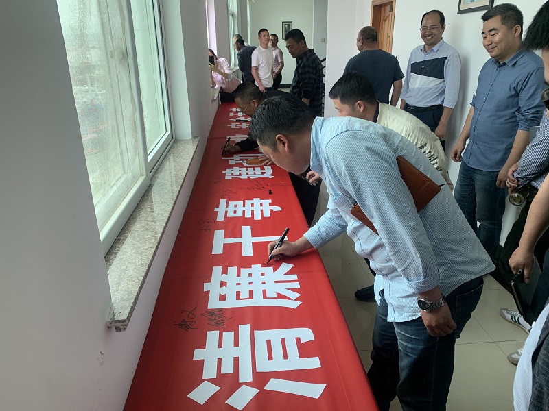 會后,各參建單位與會人員在以主題為“清廉干事,建功立業(yè),安全無恙”的宣傳橫幅上簽名合影。