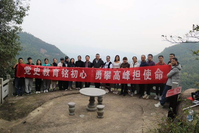 活動中,全體人員赴廣德四合攀爬靈山。靈山坐落于黃山山脈和天目山脈匯合處,以奇石、險峰、幽林、飛瀑聞名?;顒尤碳s4公里,大家斗志昂揚、精神飽滿,高唱紅色歌曲,分享黨史故事,開辟了黨史學(xué)習(xí)教育新的課堂。