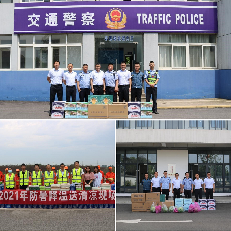 本次活動項目公司為新杭派出所、沿線交警以及一線養(yǎng)護人員送去了礦泉水、藿香正氣丸、蘇打水、西瓜、風油精等防暑降溫物資,向他們堅守一線的敬業(yè)精神表示感謝,叮囑他們要做好防暑降溫,安全工作。項目公司要求養(yǎng)護單位根據(jù)實際情況,合理安排作業(yè)時間,確保安全有序開展養(yǎng)護工作。