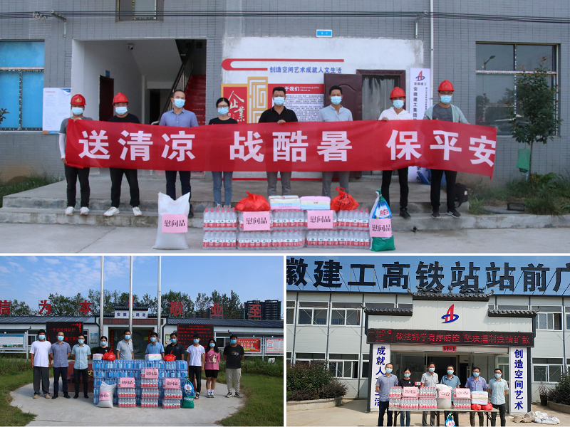 為切實做好職工戶外防暑降溫工作,關(guān)愛一線職工的健康安全,8月18日上午,安建投資潛山PPP項目赴廠房項目部、安徽路港項目部以及高鐵站前廣場項目部開展“送清涼”慰問活動。