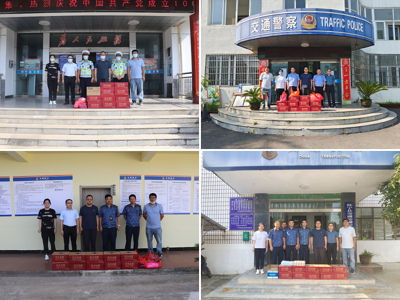 項(xiàng)目公司組織黨員和青年團(tuán)員先后為懷寧縣石牌鎮(zhèn)和黃墩鎮(zhèn)交警中隊(duì)以及公路執(zhí)法中隊(duì)送去毛巾、礦泉水、花露水等防暑降溫用品,向一線交通執(zhí)法人員表達(dá)誠(chéng)摯敬意和慰問,并感謝全體執(zhí)法人員為廣大人民群眾創(chuàng)造的良好道路交通出行環(huán)境。