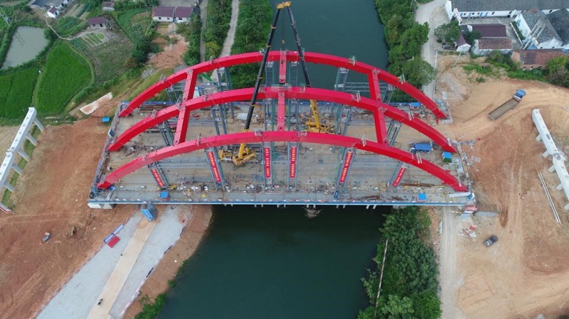 【學(xué)黨史 見(jiàn)行動(dòng)】安建投資涇縣PPP項(xiàng)目S457寧涇公路涇縣段青弋江灌渠大橋工程主拱順利合龍