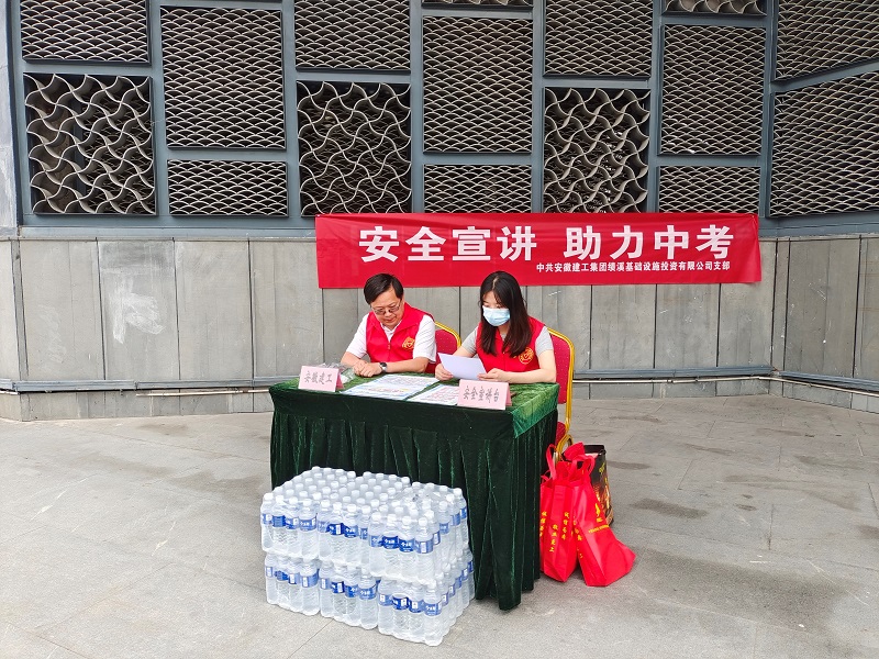 6月16日上午,項目公司組織黨員和青年團員赴績溪縣中考考點(績溪中學)開展安全宣講活動,設立中考“愛心驛站”,在考試期間向家長免費發(fā)放暑期安全手冊和防暑降溫物品,服務考生和家長。