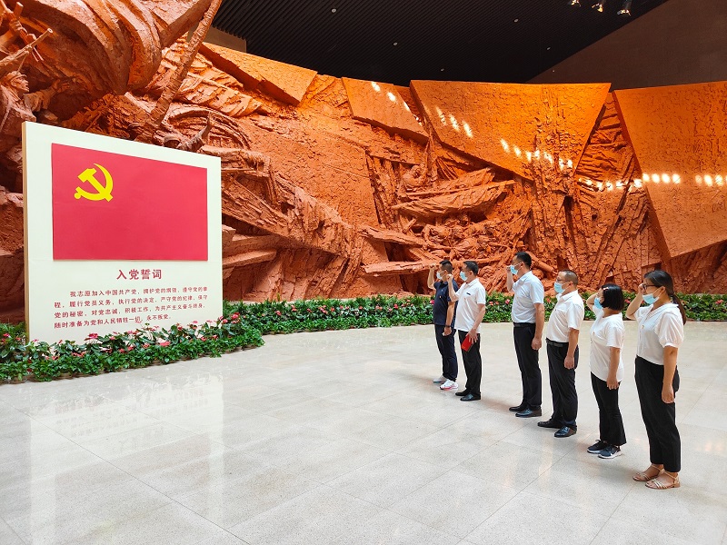全體黨員走進合肥渡江戰(zhàn)役紀念館緬懷革命烈士、追尋革命精神,并重溫了入黨誓詞。紀念館廣場上,矗立著渡江戰(zhàn)役總前委成員——鄧小平、劉伯承、陳毅、粟裕、譚震林的雕像,讓人肅然起敬。在講解員的帶領下,大家依次參觀了館內陳設,通過觀看實物影像、聆聽生動詳細的解說,重溫那段波瀾壯闊的革命歷史,深切緬懷革命先烈的豐功偉績。
