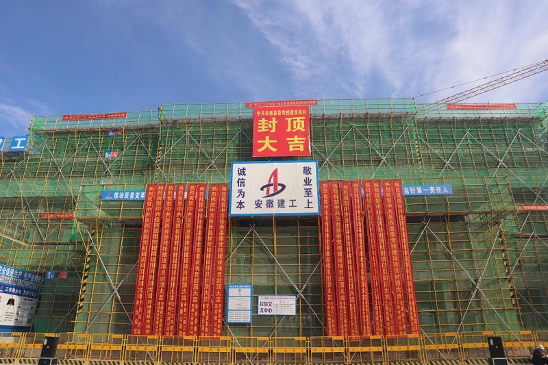 【學報告 見行動】安建投資岳西“兩?!盤PP項目岳西縣委黨校子項校際交流中心樓順利封頂