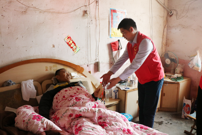 秦懷遠(yuǎn)看到幾位志愿者來(lái)到房間,很快意識(shí)到他們是來(lái)幫助他的,但是病魔纏身的痛苦,使他躺在床上并沒(méi)有多余的力氣說(shuō)話。他掙扎著想坐起來(lái),小劉趕快叮囑他躺好。志愿者們迅速把募集善款交給秦懷遠(yuǎn)父母手中,整個(gè)捐助過(guò)程沒(méi)有持續(xù)很久,也并沒(méi)有跟秦懷遠(yuǎn)介紹太多,但當(dāng)秦懷遠(yuǎn)看到志愿者服裝上安徽建工幾個(gè)大字的時(shí)候,眼睛流露出感激的表情。小劉注意到床頭只擺放幾瓶中成藥口服液,以及常用退燒藥,意識(shí)到了他們家可能面臨的困難遠(yuǎn)遠(yuǎn)超過(guò)之前的想象,心里不禁一陣陣難過(guò)。