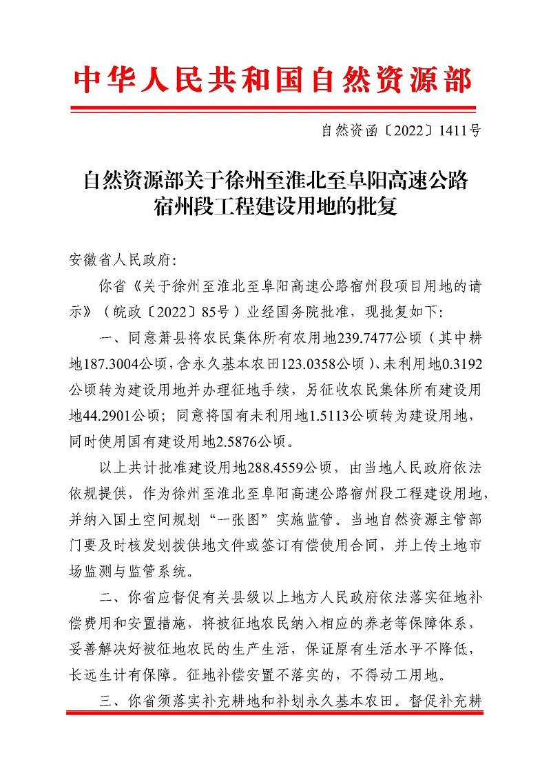 【高速動態(tài)】喜報!安建投資徐淮阜高速公路宿州段項目建設(shè)用地正式獲批