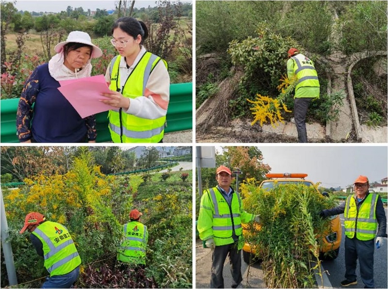 為維護(hù)生態(tài)平衡,10月12日至17日,建工投資懷寧PPP項(xiàng)目公司組織開展清除“加拿大一枝黃花”專項(xiàng)行動(dòng),對(duì)項(xiàng)目公路綠化帶存在的入侵物種進(jìn)行全面清除,并對(duì)周邊村民開展知識(shí)宣傳普及。截至目前,項(xiàng)目公司已累計(jì)清除黃花800余株,全力筑牢公路生態(tài)環(huán)境安全屏障。