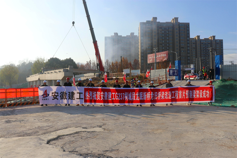 決戰(zhàn)四季度,大干正當(dāng)時。12月8日,建工投資桐城片區(qū)開發(fā)項目子項G237桐城段龍眠新橋改造工程首片梁板順利完成架設(shè),標(biāo)志著該項目正式拉開橋梁上部結(jié)構(gòu)施工的序幕。