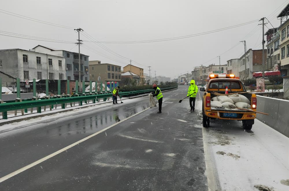 太湖項(xiàng)目公司組織養(yǎng)護(hù)隊(duì)伍及時(shí)清理S246、G105項(xiàng)目道路積雪,確保道路通行安全。