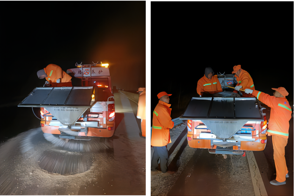15日晚間,淮北項(xiàng)目公司在運(yùn)營(yíng)的S101、S254路段連夜撒布融雪劑,開展除雪除冰。