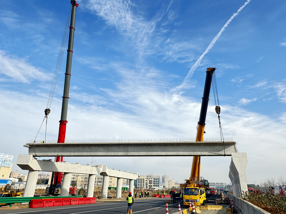 12月26日上午,建工投資桐城片區(qū)開發(fā)項目子項和平東路上跨合安高速立交橋項目首片箱梁順利完成架設(shè),拉開了該項目橋梁上部結(jié)構(gòu)施工的序幕。