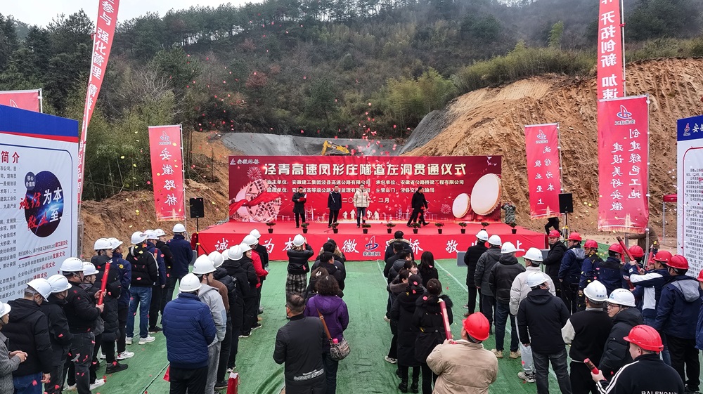 2024年2月2日,隨著最后一米巖體被鑿穿,安徽建工投資建設(shè)的涇青高速項目鳳形莊隧道左洞順利貫通,標(biāo)志著項目建設(shè)取得又一階段性勝利。