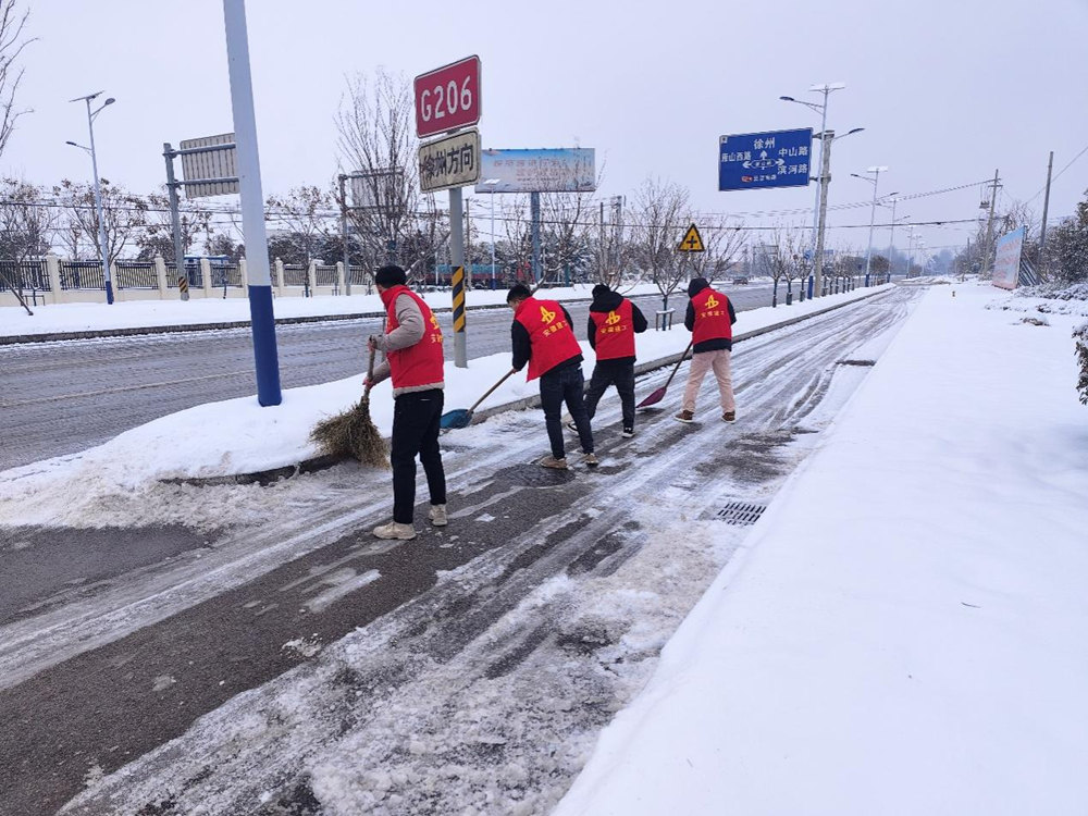 宿徐現(xiàn)代產(chǎn)業(yè)園片區(qū)開發(fā)項(xiàng)目組織團(tuán)員青年積極投身除雪鏟冰第一線,沖鋒在前,用青春身影筑起了一道“溫暖防線”。