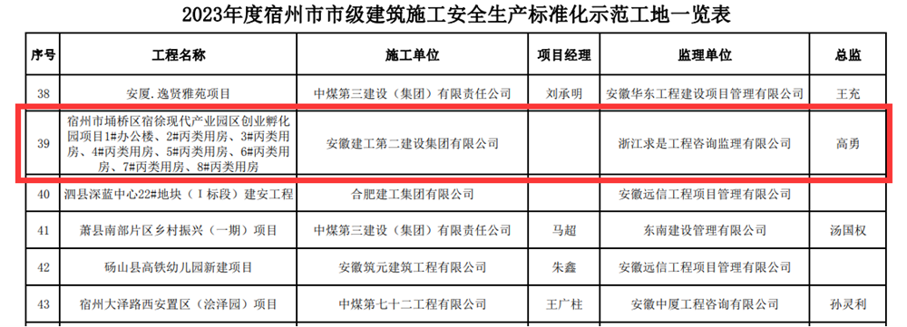 建工投資宿徐現(xiàn)代產(chǎn)業(yè)園片區(qū)開發(fā)項(xiàng)目子項(xiàng)獲評2023年度宿州市“安全生產(chǎn)標(biāo)準(zhǔn)化工地”、“質(zhì)量標(biāo)準(zhǔn)化工地”