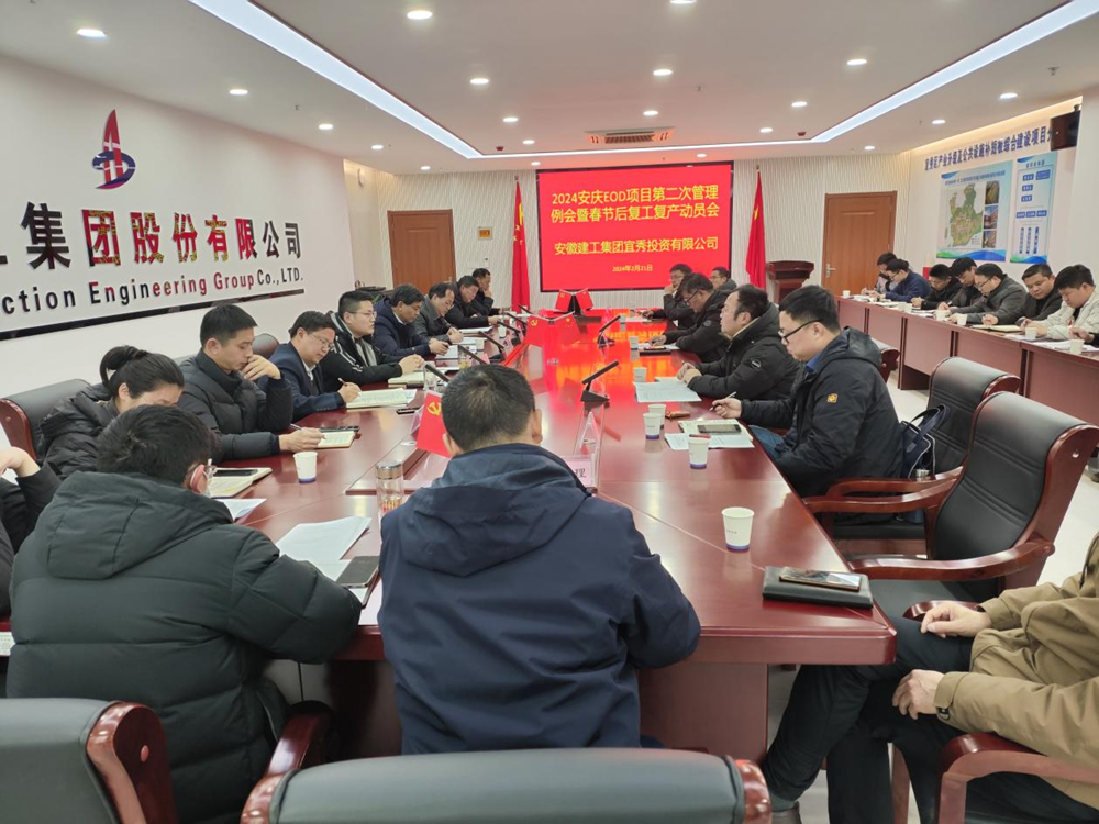 為加速推進項目復工復產(chǎn),切實抓好安全生產(chǎn)工作,2月21日上午,建工投資安慶EOD項目召開2024年第二次管理例會暨節(jié)后復工復產(chǎn)動員會。北部新城管理局、項目公司及各參建單位有關人員參加會議。