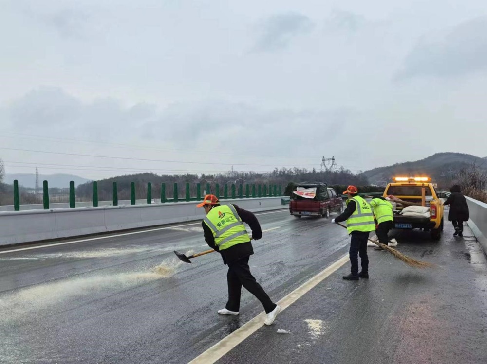 宿州高速項(xiàng)目積極配合縣委、縣政府,采用“機(jī)器+人工”的方式,即下即掃、邊下邊清,全力保障過往群眾及車輛出行安全。