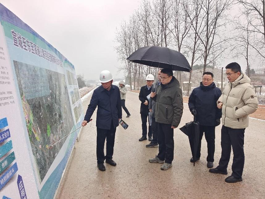 2月23日上午,宣城市副市長汪侃一行赴建工投資涇青高速公路項目調研項目建設進展情況。
