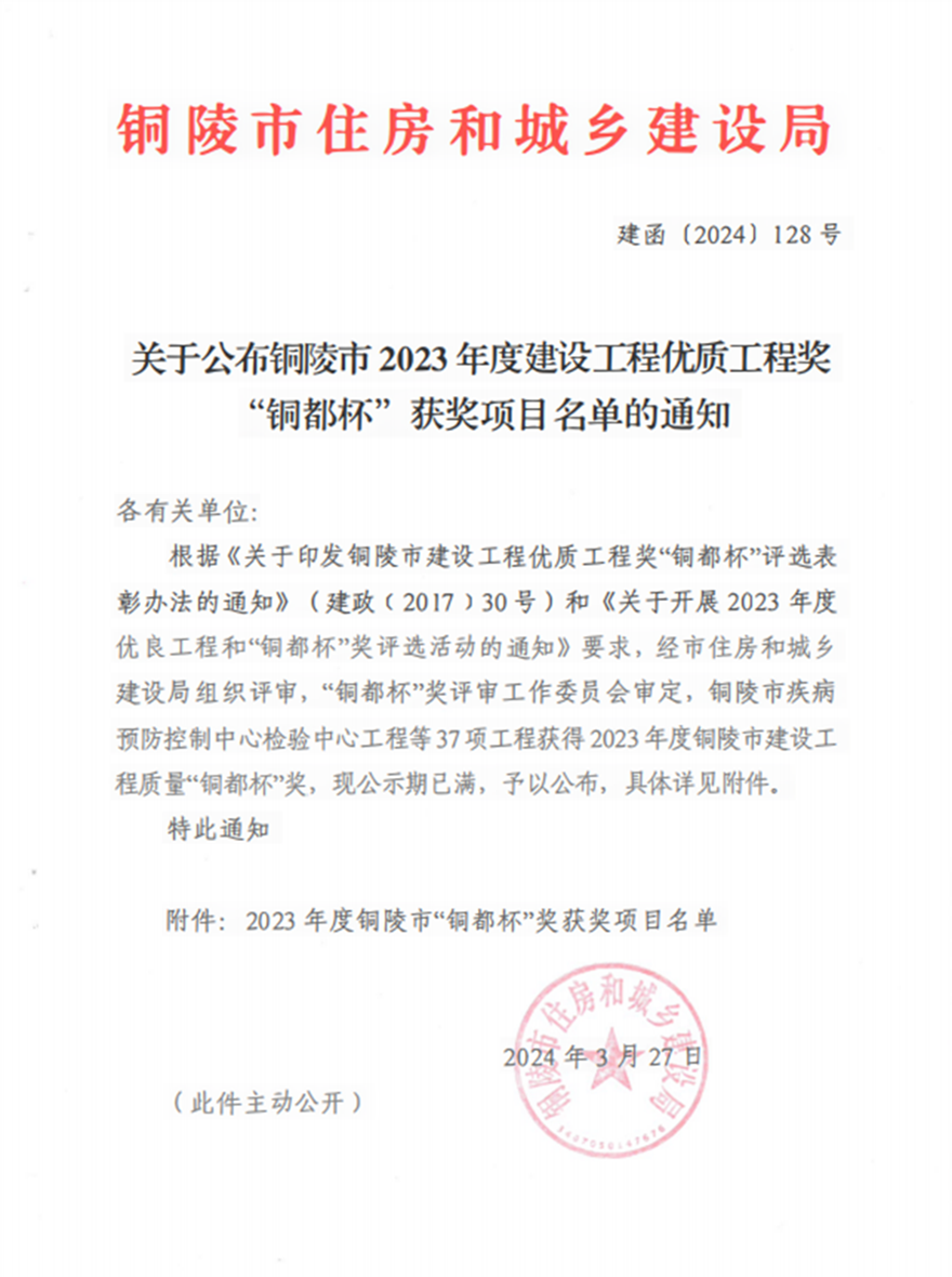 【“投”條喜報】建工投資銅陵P(guān)PP項目子項獲評“銅都杯”獎