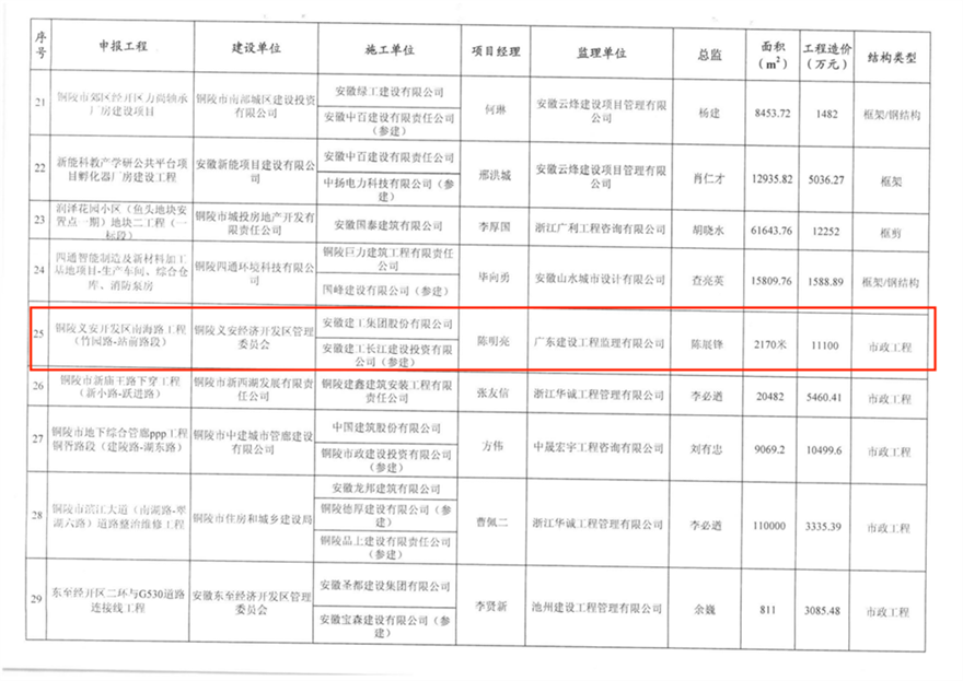 近日,2023年度銅陵市建設(shè)工程質(zhì)量“銅都杯”獎?wù)焦?,由安徽建工投資建設(shè)的銅陵義安開發(fā)區(qū)南海路工程(竹園路-站前路段)喜獲2023年度銅陵市建設(shè)工程質(zhì)量“銅都杯”獎。