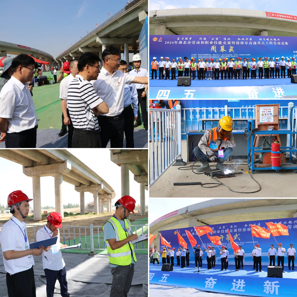 6月6日,2024年淮北市勞動(dòng)和職業(yè)技能競(jìng)賽暨徐淮阜高速重點(diǎn)工程勞動(dòng)競(jìng)賽在徐淮阜高速淮北段路基路面標(biāo)劉橋互通建設(shè)主戰(zhàn)場(chǎng)舉辦?;幢笔形N?、市紀(jì)委書記、市監(jiān)委主任李朝暉,淮北市人大常委會(huì)副主任、市總工會(huì)主席趙德志,安徽建工集團(tuán)股份有限公司黨委副書記徐文聯(lián),淮北市交通運(yùn)輸局黨組書記、局長(zhǎng)王慶江及淮北高速項(xiàng)目公司、徐淮阜高速淮北段各施工單位有關(guān)人員參加活動(dòng)。