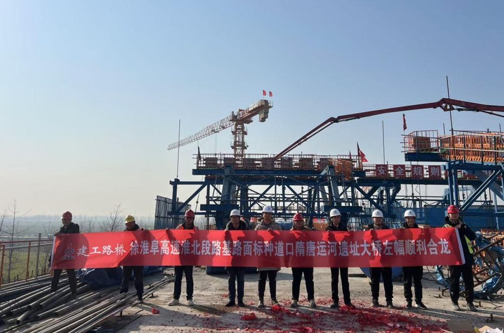 【高速動(dòng)態(tài)】建工投資徐淮阜高速淮北段項(xiàng)目種道口隋唐運(yùn)河遺址大橋左幅順利合龍