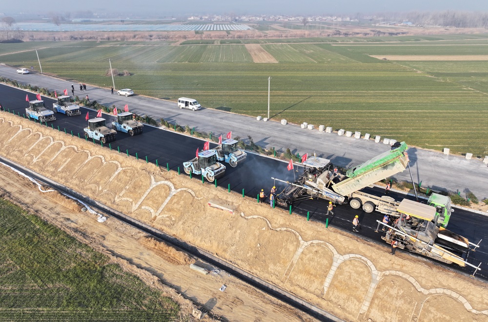 今年是徐淮阜高速項目通車之年,為順利實現(xiàn)通車目標,從春節(jié)假期至今,參建人員堅守崗位,采取輪班作業(yè)和高效調(diào)度策略,齊心協(xié)力,加班加點,用建設(shè)熱潮詮釋別樣“年味”?;幢倍雾椖吭诖汗?jié)期間有條不紊開展路基路面標水穩(wěn)底基層攤鋪工作,宿州段項目持續(xù)推進水穩(wěn)底基層、路基路面附屬工程小構(gòu)預(yù)制規(guī)模化施工。截至目前,淮北段路基填方已基本完成,路基拱護完成25.2公里,完成占比77%。宿州段項目路基填方、橋梁下部結(jié)構(gòu)、梁板預(yù)制、梁板安裝全部完成;完成標志標牌基礎(chǔ)148個,完成31%;波形梁護欄立柱施工完成66%。