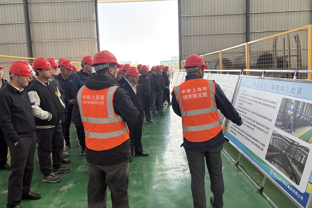 本次觀摩會旨在搭建交流平臺,學習高速公路項目先進工藝工法應用以及工程質(zhì)量安全管控等方面的亮點與實踐經(jīng)驗。觀摩人員參觀了智慧梁場建設(shè)施工現(xiàn)場,項目部著重講解了公路預制箱梁環(huán)形生產(chǎn)線、鋼筋數(shù)控加工和智能液壓模板系統(tǒng)的創(chuàng)新亮點及底模移動臺車、智能振搗系統(tǒng)、蒸汽養(yǎng)護在工程中的應用成果,全面呈現(xiàn)了項目在精細化管理、技術(shù)創(chuàng)新及安全文明施工方面取得的階段性成果。